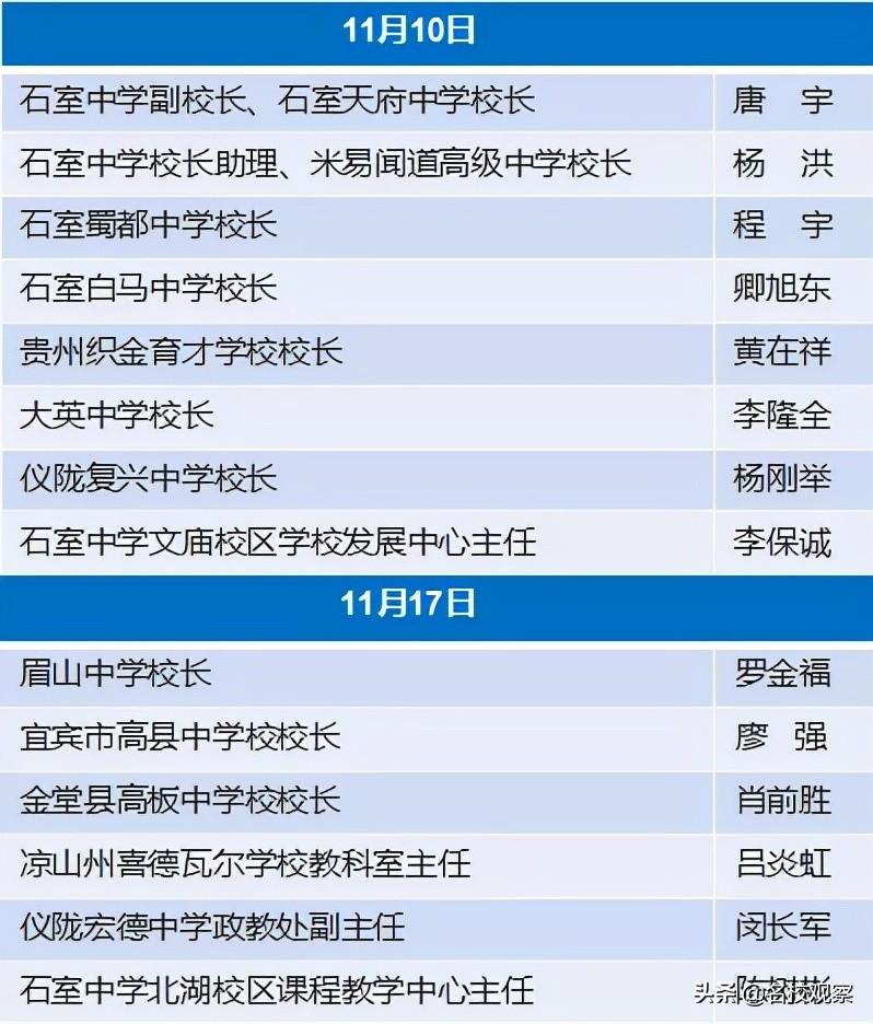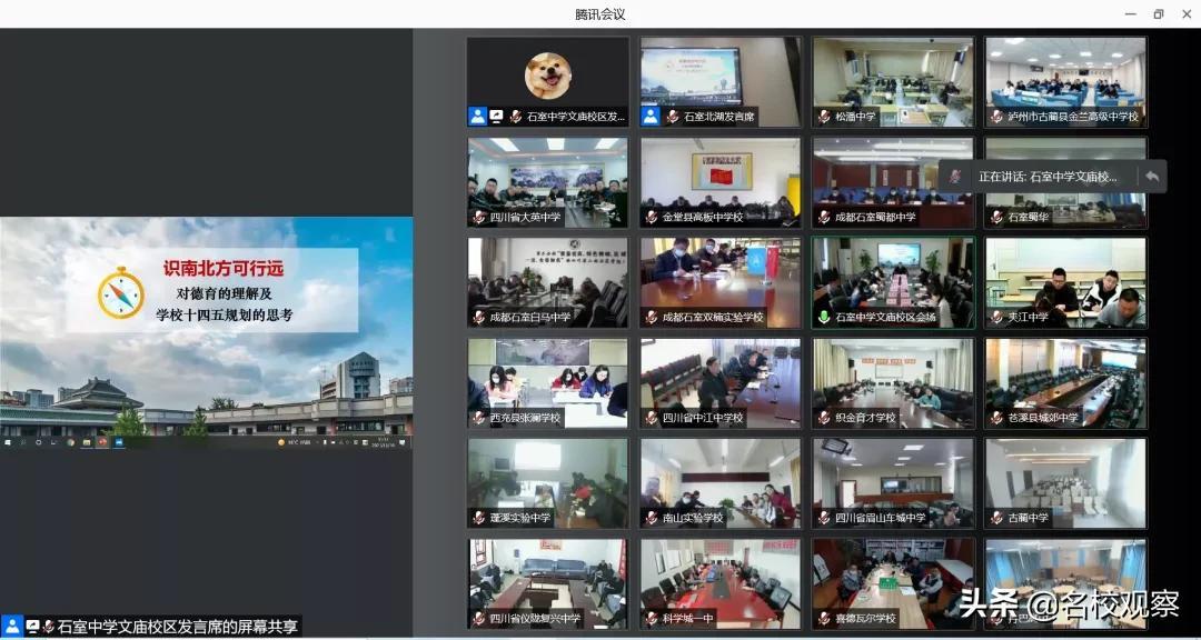 为持续输出石室经验,构建校际学习共同体,11月10日起,石室中学对外开放行政会议。除两校区行政干部、年级组长等参加外,会议面向集团成员学校、祥云网校、四川云教、名校长工作室全面开放。