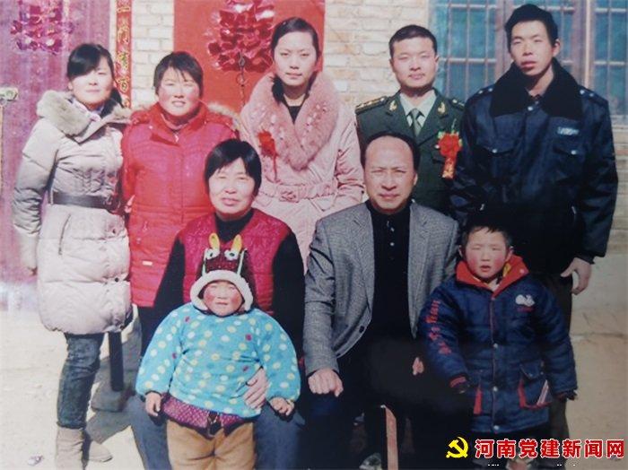 李松(后排左二)与爱人王真碰(后排右一)及其两个儿子(前排)和亲属们合影