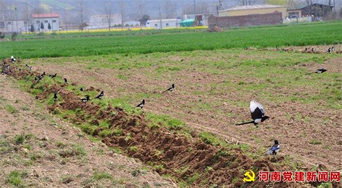 墓地虽然寒风凛冽,但是空气格外清新。头天下了一整夜的雨,当天又从早晨下到上午9点半之多,还伴着三、四级的东北风,下起了雨夹雪,最低气温降到了零度。先前,我担心结冰、路滑、不安全。然而,让人欣慰的是,到达墓地时雨、雪都停了,墓地上空和四周麦地里以及间作的泡桐树上,有上百只喜鹊叽叽喳喳地叫着,尽情的或低空盘旋,或你追我赶,或寻觅食物。喜鹊,在我国可是吉祥的象征,我和亲友们都感到意外和惊奇!