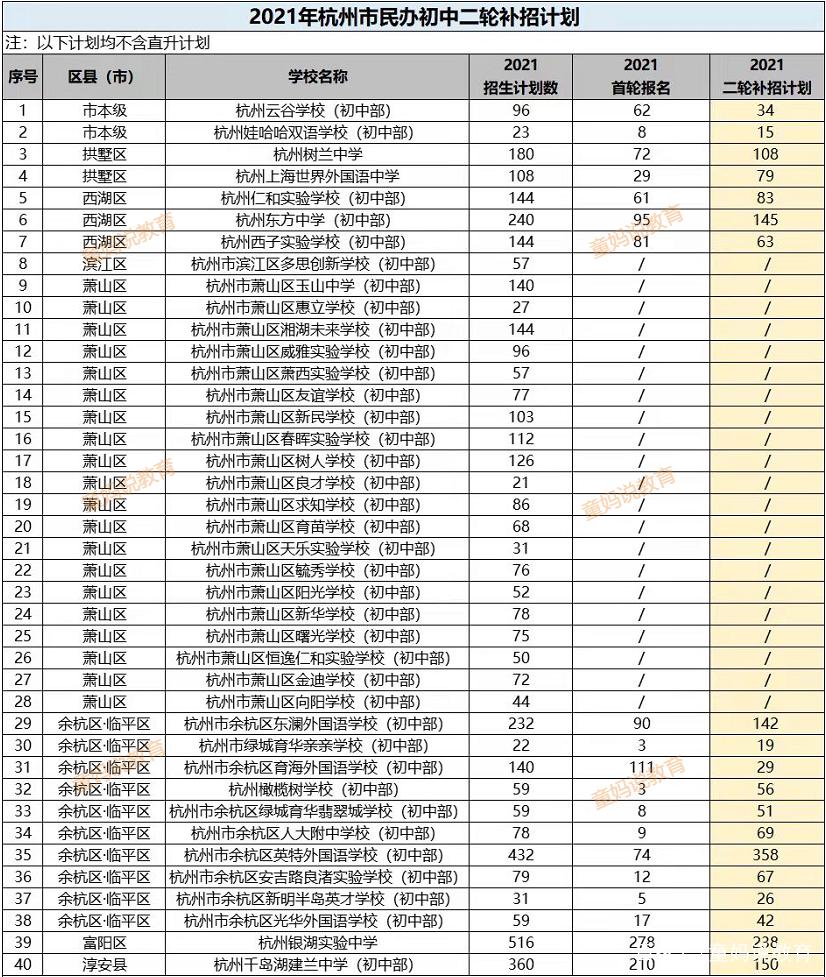 童妈也帮大家整理了2021年40所可以进行第二轮招生的民办初中及招生人数,见下表: