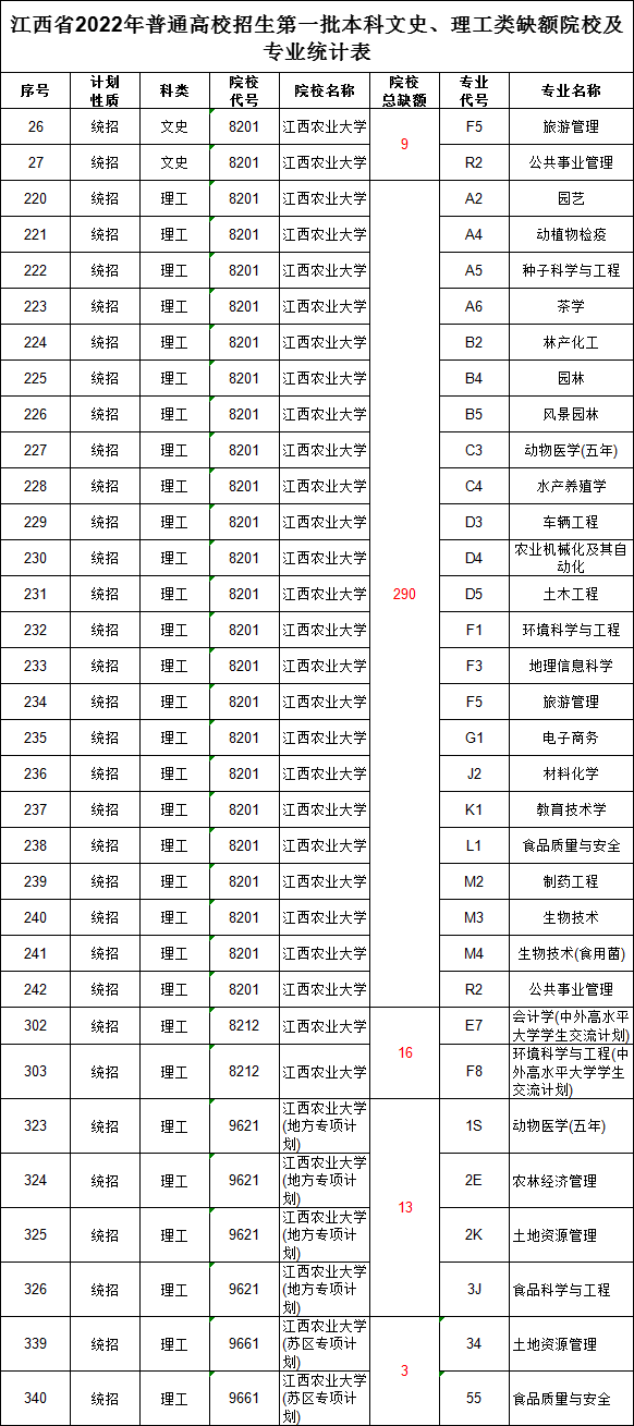 江西农业大学今年缺额的专业中,就包括旅游管理、车辆工程、旅游管理、电子商务、材料化学等与农业相关度不高的专业。