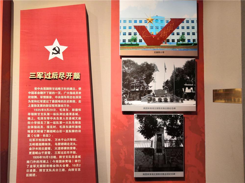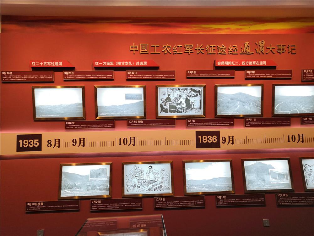 1935年8月至1936年10月历时一年零三个月,中国工农红军第二十五军,红一、二、四方面军长征先后过境通渭,百分之八十以上的乡镇和村庄都有红军足迹,是长征途中各路红军过境最全、活动时间最长和范围最广的地区之一。在这块土地上,中共中央召开了名载史册的"中共中央政治局榜罗镇会议"和陕甘支队连以上干部会议,毛泽东在通渭县城首次朗诵了《七律·长征》诗,红军战士在县城南河滩举行了长征途中盛况空前的文娱联欢晚会暨大会餐等一系列活动,红军在通渭创建了苏维埃政权,广传革命真理,播下了革命的火种。
