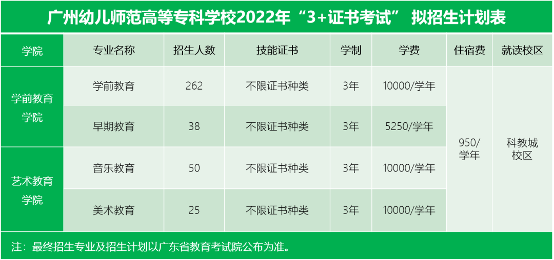 可以看到该校面向3+证书高职高考招生专业有:学前教育、早期教育、音乐教育、美术教育,同时坐落于经济发达的国际化大都市广州,经济发展水平高,加上三胎政策,未来社会对学前教育师资及相关人才有着大量需求,就业环境和就业机会是比较充裕可观的。