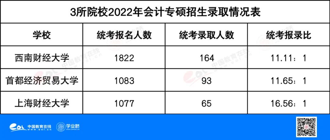 我们来看几个学校的会计学专业考研招生录取情况。