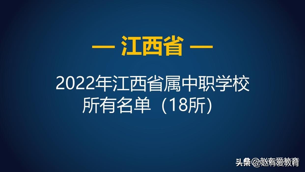 2022年江西省省属公办中职学校名单(16所)2022年江西省省属民办中职学校名单(2所)江西省省属中职学校名单当中,所有名单都是普通中专类型院校。下面一起看看,详细的江西省属中职学校名单~