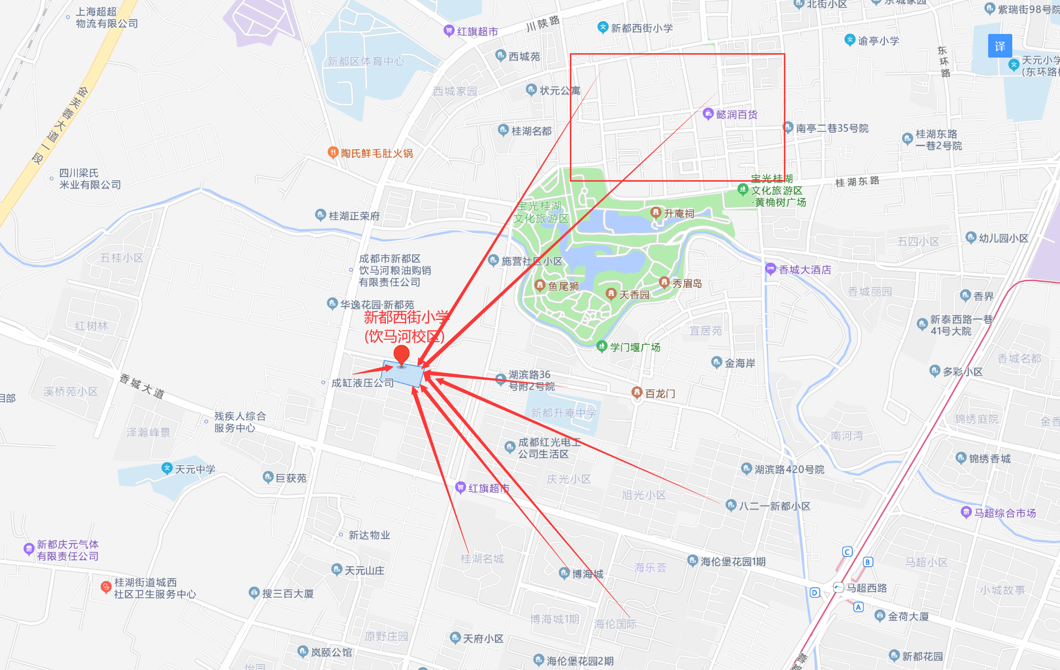 户籍地址在新都街道以下小区的适龄儿童:天府香城、状元府邸、芙蓉名城A区、橄榄郡、天香苑、北城一号、御城、邑品天都、旺府豪庭、富豪尚都、富豪公馆二期、红星小区(一期、二期、红星逸园)、九街广场、万千城、九镜堂、星都荟、水岸风景、雍锦府