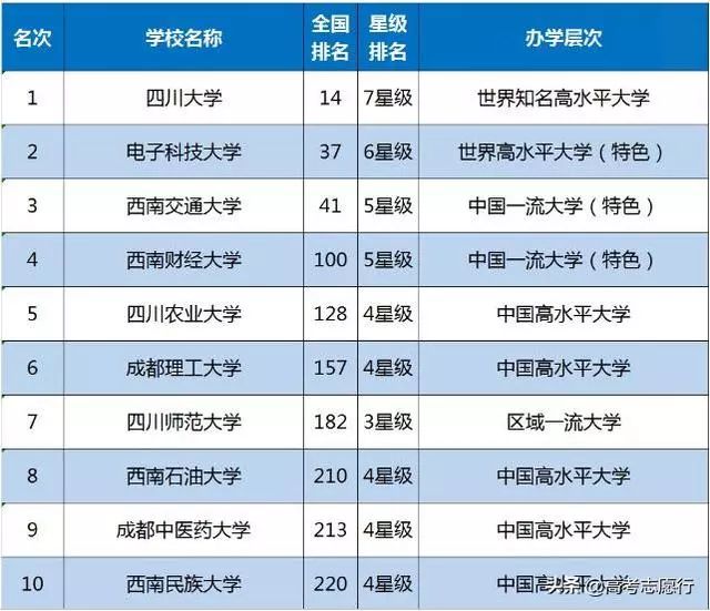 版权声明:我们致力于保护作者版权,注重分享,被刊用文章【2017四川高考学校排名(四川前10名大学)】因无法核实真实出处,未能及时与作者取得联系,或有版权异议的,请联系管理员,我们会立即处理! 部分文章是来自自研大数据AI进行生成,内容摘自(百度百科,百度知道,头条百科,中国民法典,刑法,牛津词典,新华词典,汉语词典,国家院校,科普平台)等数据,内容仅供学习参考,不准确地方联系删除处理!;