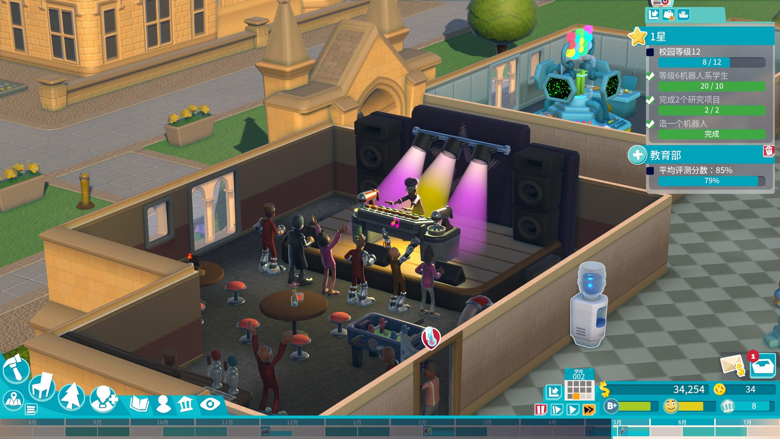 《双点校园》似乎在试图还原美剧里丰富多彩的大学生活,并且还稍微再加了点儿料。比方说你可以花费一笔钱在学生休息室里加一个舞台,然后定期举办一场DJ夜嗨。