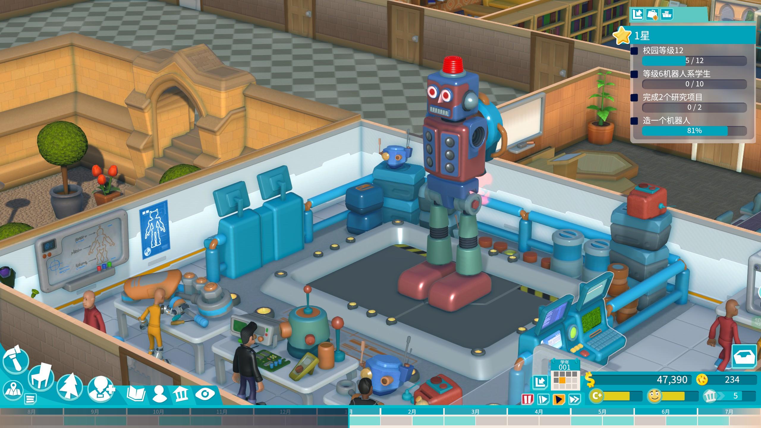另一个问题是,上面提到的这些学科,游戏性上也几乎完全一致,只是摆放的学科用具不同罢了——摆放一个学科教室,一个阶梯教室,一个图书馆,这些“初级学科”的准备基本上就结束了。