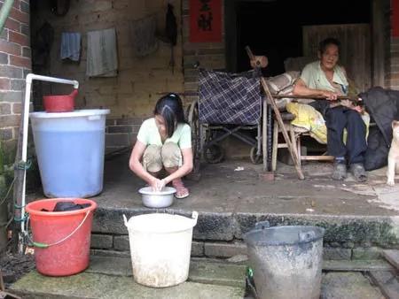 做完这些事后,女孩儿才赶去上学,下午放学后,接着挑水砍柴编竹筐……
