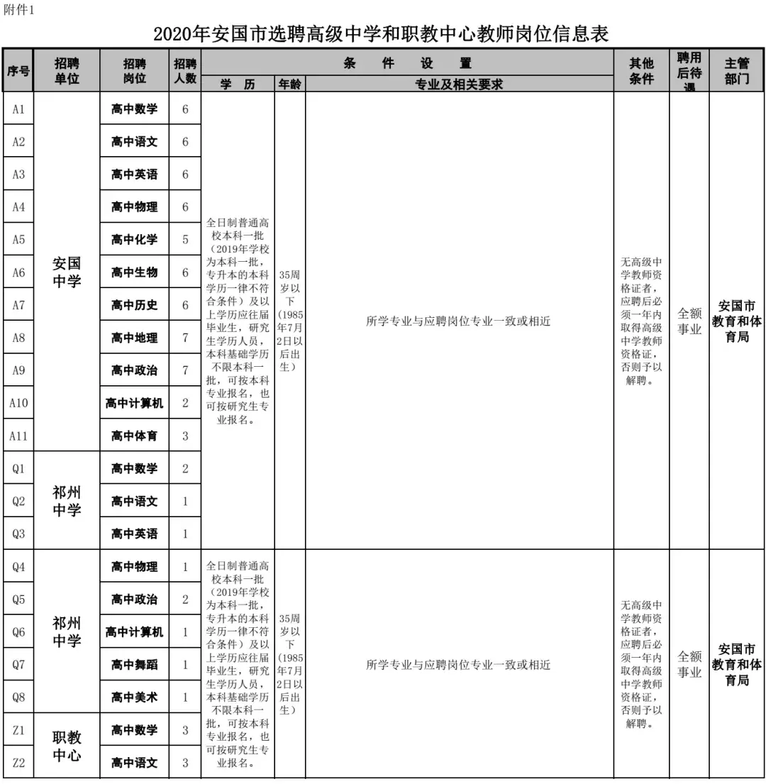 >青龙满族自治县2020年直聘和公开招聘普通高中和职教中心教师实施方案