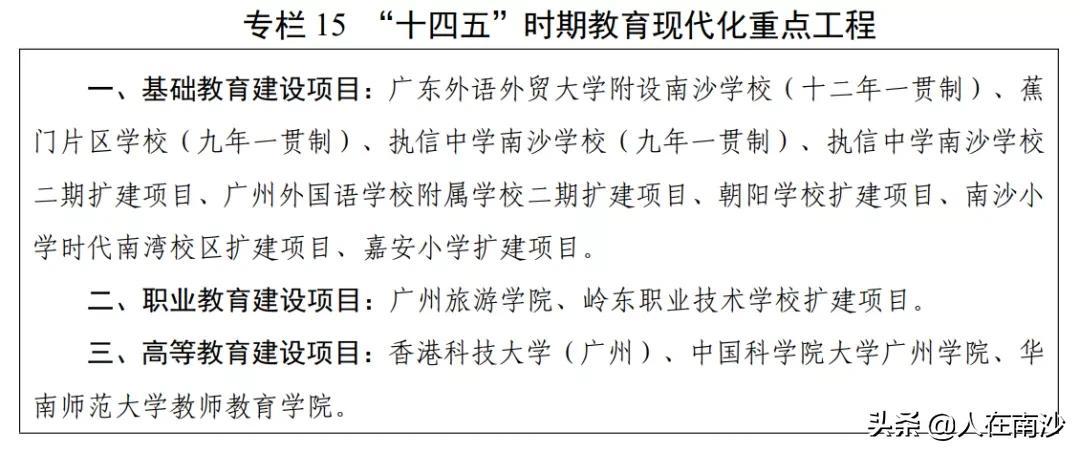 当然还有南沙人更加关注的就是学校建设方面的内容了,可以看到十四五期间南沙列出的重点工程有以下内容: