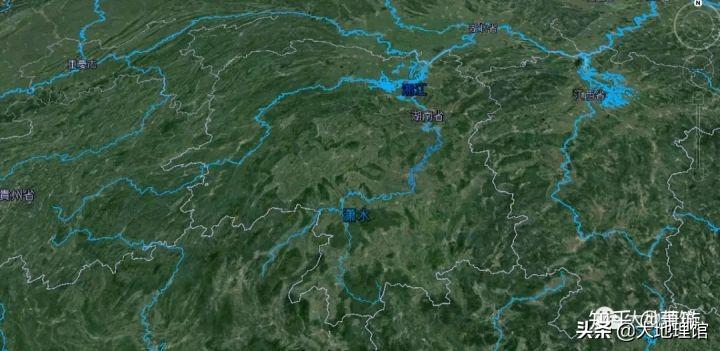 |地球遥感图上的长江水系|底图来源:谷歌地球