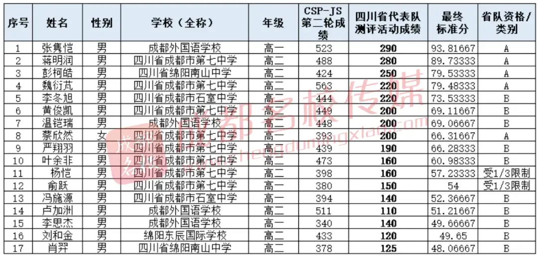 根据公布的结果,四川省信息学竞赛的省队名单公示如下: