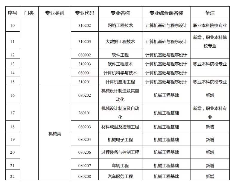 2022年我省普通专升本比2021年增加了3门统考专业综合课,分别为机械工程基础、学前教育基础、遗传学。