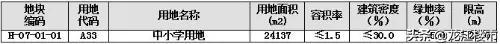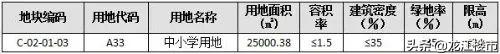 确定F-02-02-12地块用地性质为中小学用地,容积率不大于1.5,建筑密度不大于35%,绿地率不小于35%,建筑限高24米;