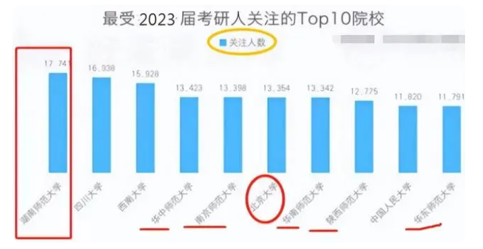 大学生渴望通过考研提高自己的实力,而考研越来越难,尤其是师范大学和师范专业,在2023年研究生考试中,最后考研人关注的前十名中,竟然有7所都是师范。