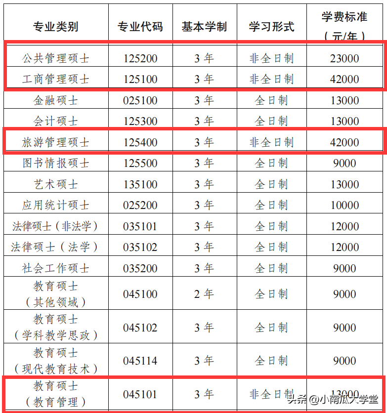 公共管理MPA2300元/年不算贵,工商管理MBA、旅游管理MTA都是42000元/年,有点高,但是比起川大,还是便宜很多,教育硕士比较合理13000元/年。
