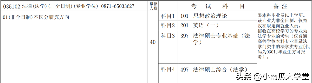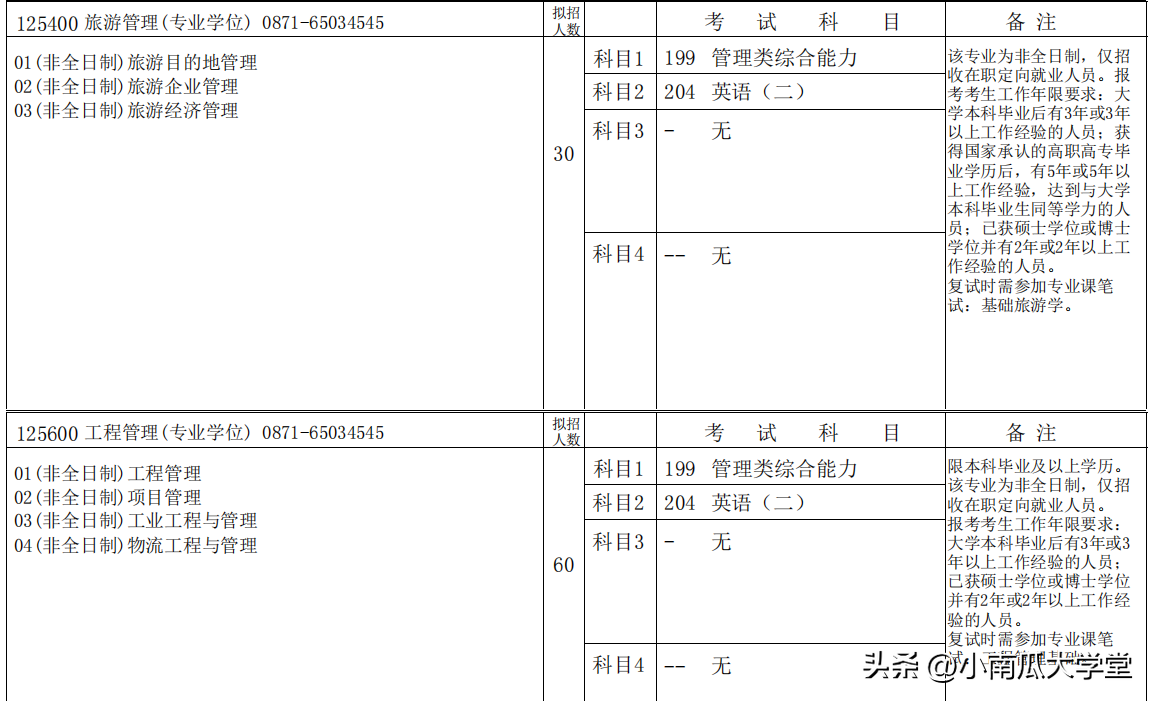 2023年云南大学研招中非全日制硕士研究生有公共管理MPA225人、工商管理MBA230人、高级工商管理EMBA110人、旅游管理MTA30人、工程管理60人、教育硕士50人、法律(法学)40人。