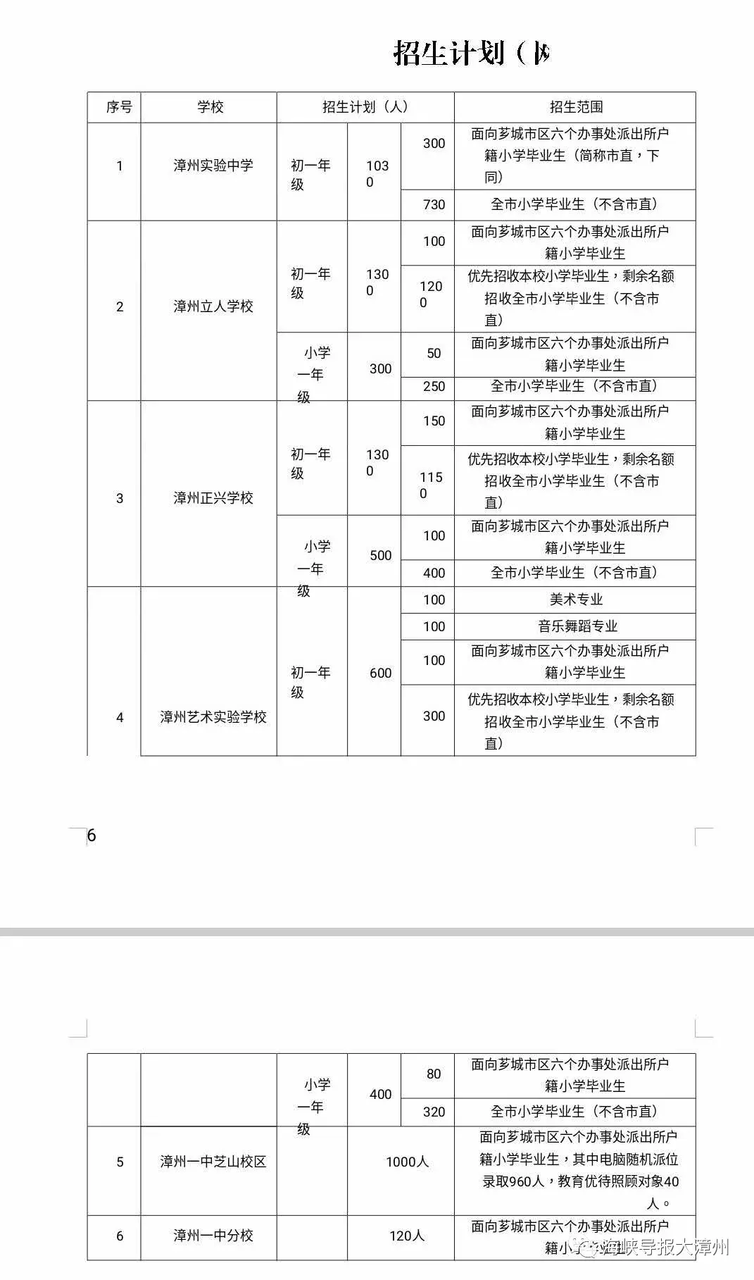 面向芗城市区户籍小学毕业生招生,每位学生可填报 2 个志愿,分为第一志愿、第二志愿。