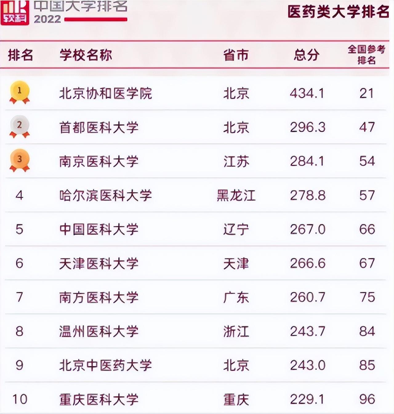 医科大学排名出炉,北京协和稳居榜首,首都医大紧追不舍