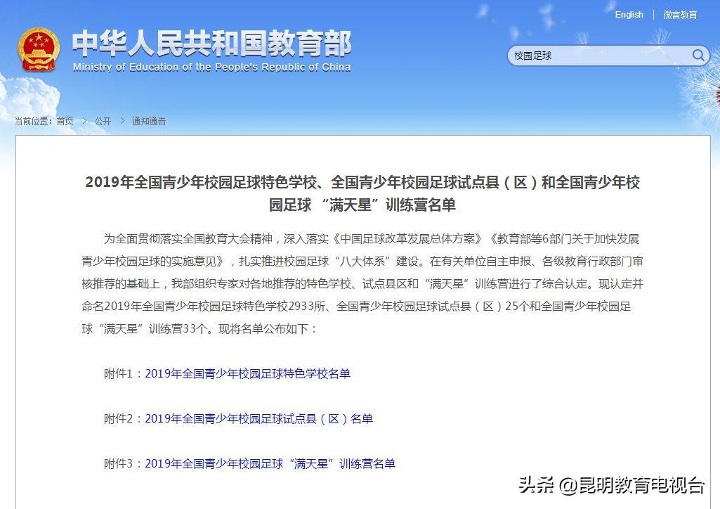 近日,教育部发布了“2019年全国青少年校园足球特色学校全国青少年校园足球试点县(区)和全国青少年校园足球 “满天星”训练营名单”