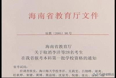 高考状元,却不能去清华北大,很多人曾将白湘菱称为最惨的高考状元。其实,在高考历史中,白湘菱并不是最惨的。15年前,有一位考生同样为高考状元,但是却连一本都没法读,他就是2005年海南省高考理科状元李洋。