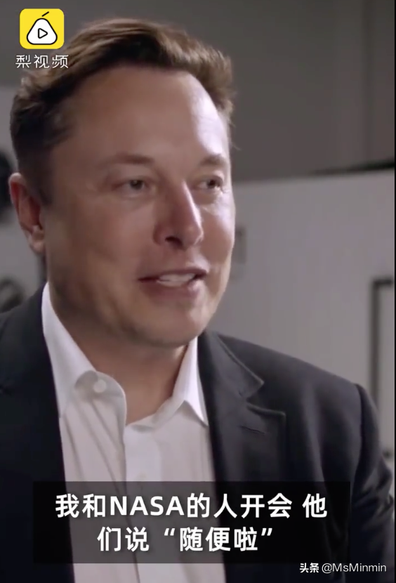 在Space X创立之初,他想为NASA提供火箭产品,提出开办会议,NASA只是回应“随便啦”,因为没人相信私人企业可以成功造出火箭。