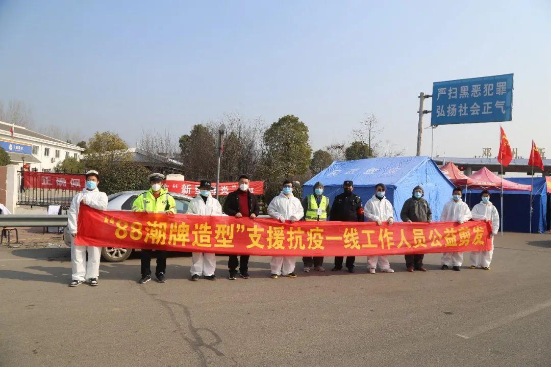 2月21日下午。由“二高顶尚发艺”、“店子口再回首发艺”、“东一环918造型”组成的“爱心志愿者”来到邓州市公安局刑警大队和前进派出所,为日夜奋战在抗疫、控疫一线的刑警大队及前进派出所的民警、辅警同志们理发、美发。