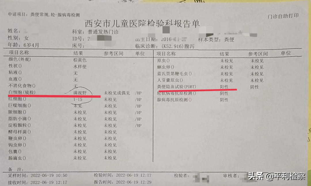 还有家长提供的报告单上,粪便隐血试验结果为阳性。