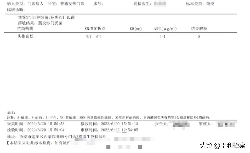 ▲近日,西安市莲湖区吉的堡金色悦城幼儿园幼儿相继出现发烧、腹泻等症状。部分孩子的检验单显示导致上述症状的原因为:肠炎沙门氏菌。