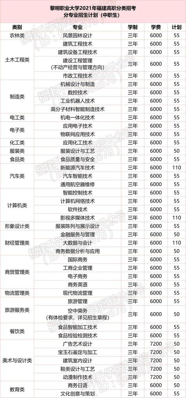 05,黎明职业大学2021高职分类招生计划:面向中职生及高中生