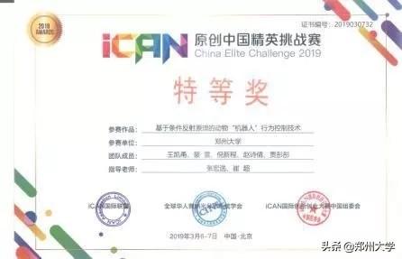 2019年3月,带队获得第十二届iCAN国际创新创业大赛中国赛区特等奖,将于今年6月代表中国国家队参加在德国柏林举办的2019年iCAN国际创新创业大赛国际总决赛和第20届世界传感器大会,这是郑州大学4年来在该项赛事上的唯一特等奖。