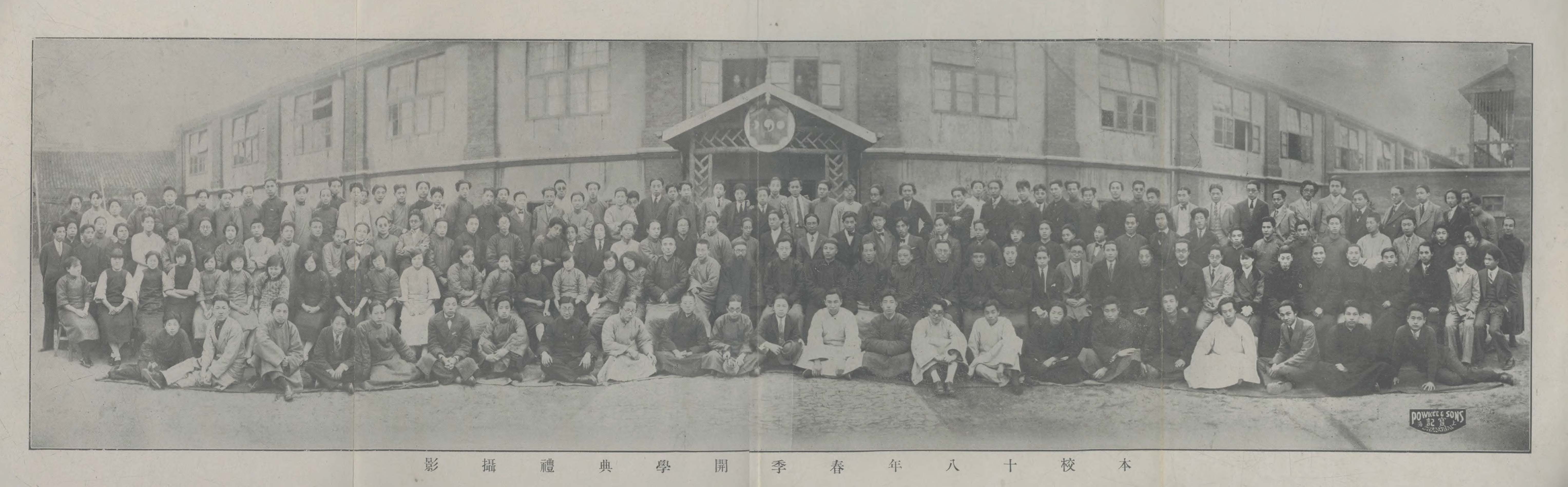 上图为上海美术专科学校1929年春季的开学典礼摄影,教职员工和学生们站在校舍前,留下了这张珍贵的留影。
