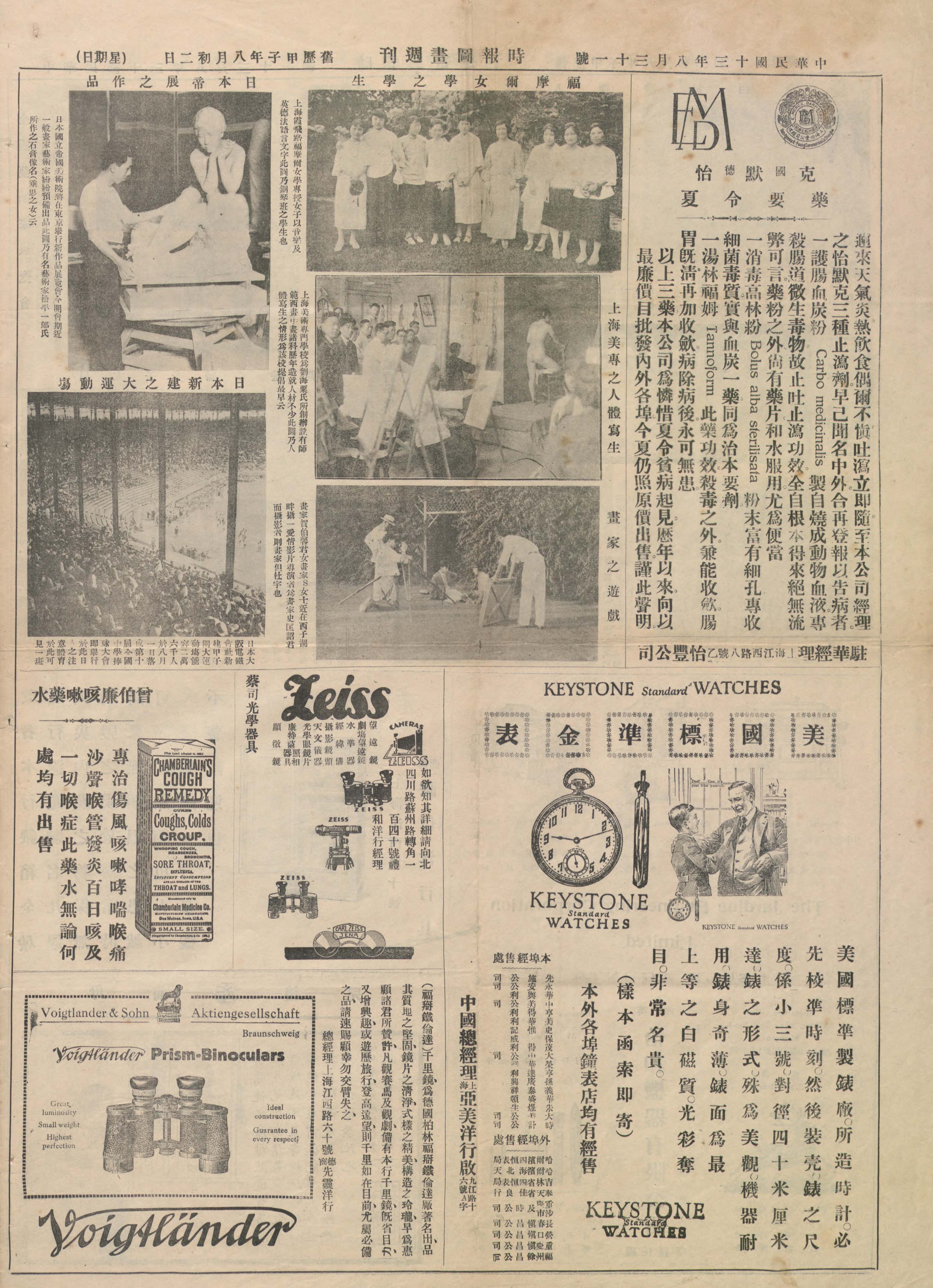 此后上海美专陆陆续续又找了几个女模特,总算将写生课稳定了下来,上图为1924年出版的第215期《时报图画周刊》,中间的一幅照片就是上海美专的写生课现场照片。