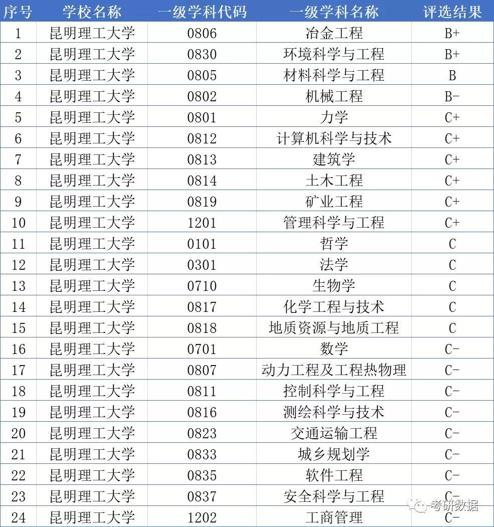 以下是为大家整理的昆明理工大学学科评估结果排名(第四轮),供大家参考: