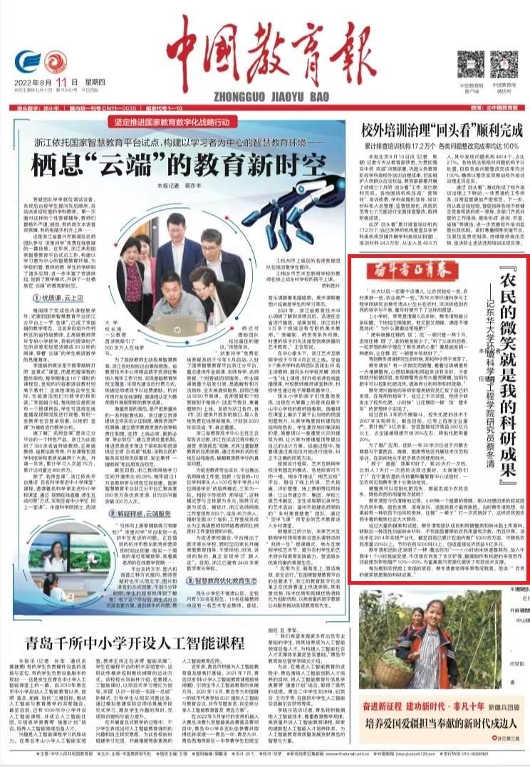 “农民的微笑就是我的科研成果”,日前,中国教育报头版报道了东华大学环境科学与工程学院研究员蔡冬清的故事。生长在农村的他,从小就深深体会到农民的艰辛,也由此种下了一颗颗“让农民轻松一些、农村美丽一些、农业高产一些”的愿望之种。随着他在科研道路上的不断跋涉,这些种子已陆续发芽、长大、开花、结果,并不断长成参天大树——