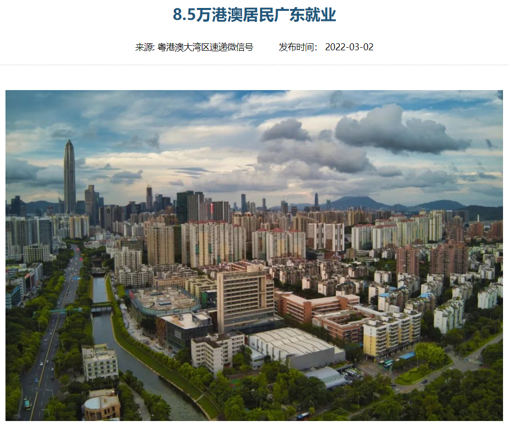 根据广东省人力资源和社会保障厅公开数据显示,目前在粤办理就业登记的港澳居民有8.5万人。此外,根据公开资料显示,在广州、佛山两地基础教育阶段就读的港澳台学生分别为2万人、1.8万人。