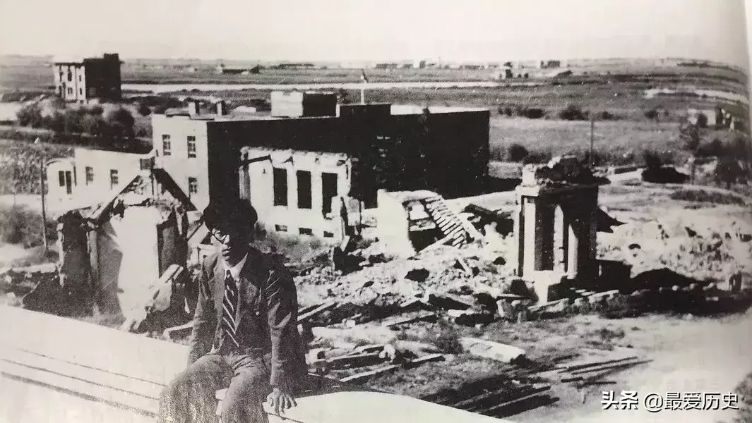日军轰炸之后,派士兵带着稻草和煤油四处纵火焚烧,美丽的校园化为一片废墟。