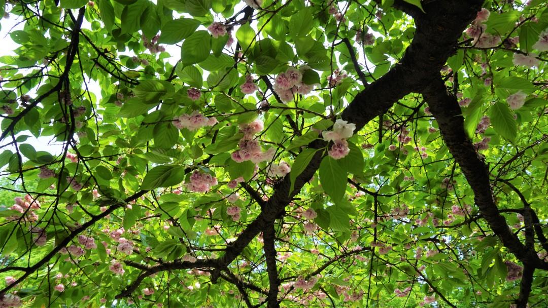 那次去,好像是四五月份,同济樱花大道的那批早樱开完了, 没见着成片的粉色浪漫,只在西南楼后面赏了一株,粉色的花和蓝色的墙搭配也好看,小清新的氛围感十足。