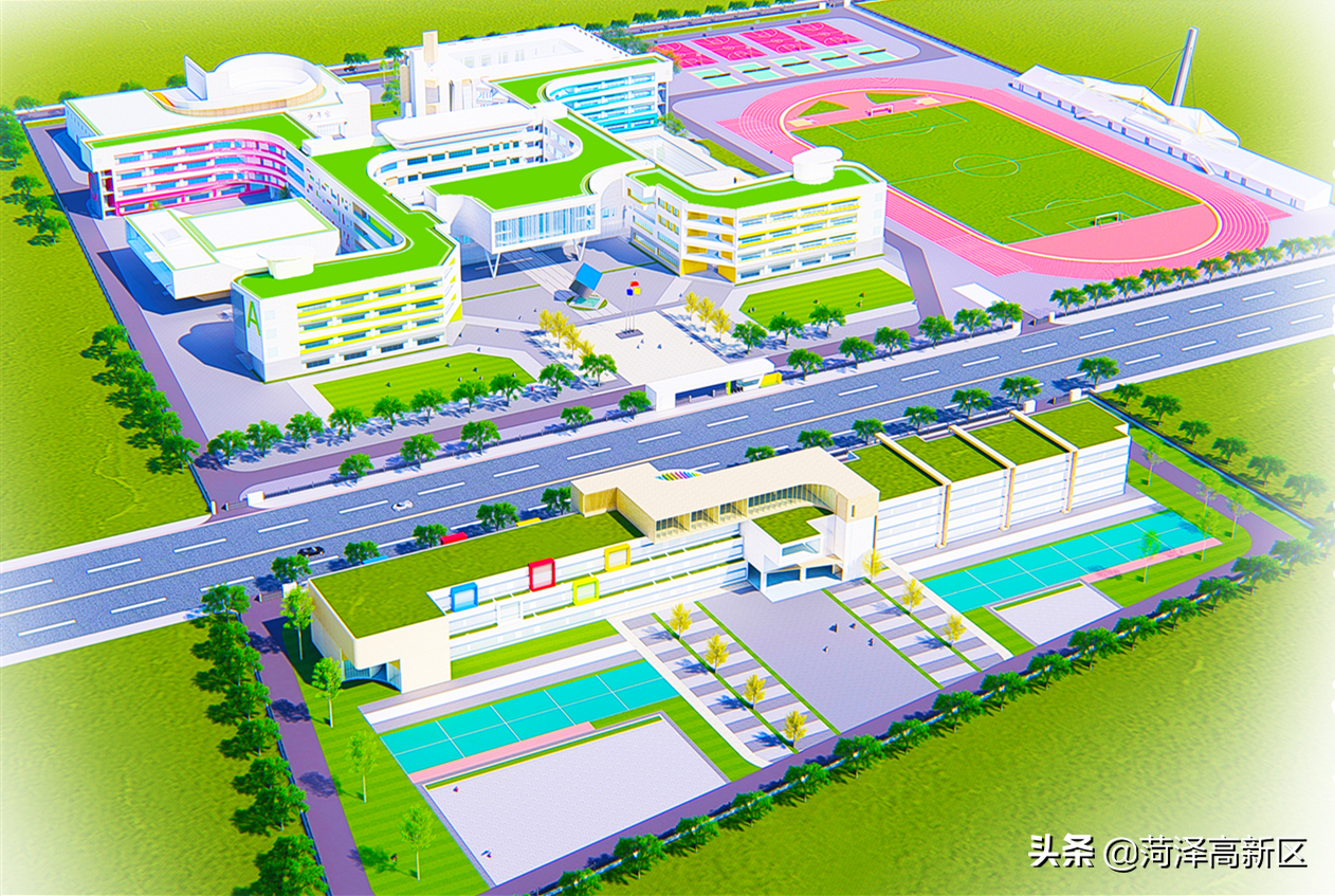 菏泽高新区实验小学、实验幼儿园局部效果图