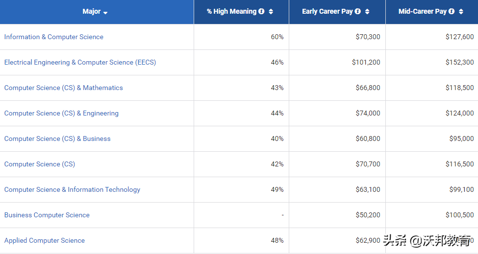 斯坦福大学的CS专业同属于全美TOP 3,在计算机理论、硬件、软件、数据库和人工智能等各个领域都居于美国乃至世界领先地位。
