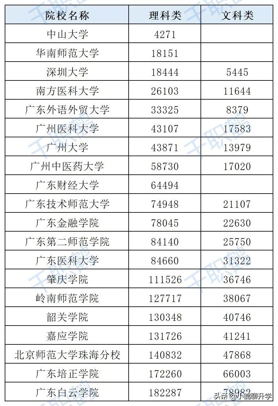 根据2020年广东省心理学专业的数据统计,录取心理学专业的大学,理科69所,文科23所。下图列出2020年广东院校心理学专业的录取排位: