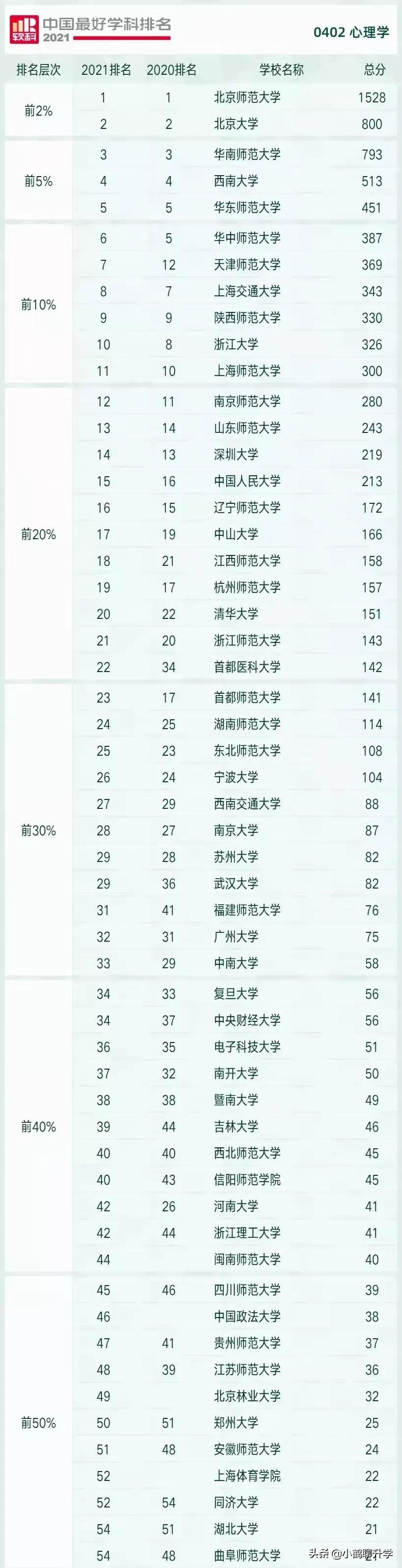 其中天津师范大学和上海师范大学为双非大学,排名高于清华大学、中国人民大学和中山大学等,而且地理位置优越,如果分数不高又想填报心理学的话,这两所学校值得关注。