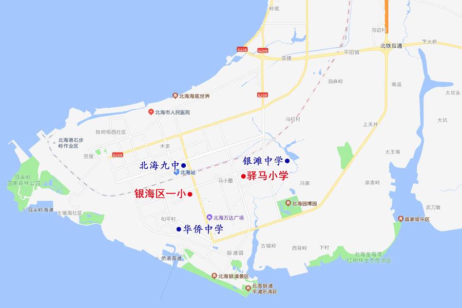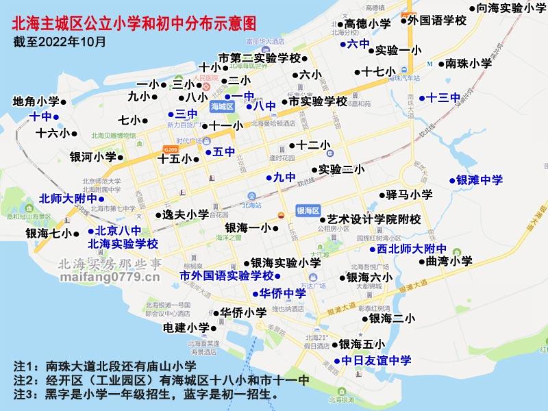 北海市主城区公立小学和初中分布示意图(截至2022年10月):