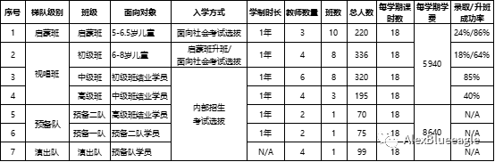 各个级别的教师配置为启蒙班3人、初级班4人、中级班6人、高级班4人、预备2队2人、预备1队2人、演出队4人,其中视唱班(初、中、高级班)的教师有交叉复用的情况。杨团教师班底详见下图: