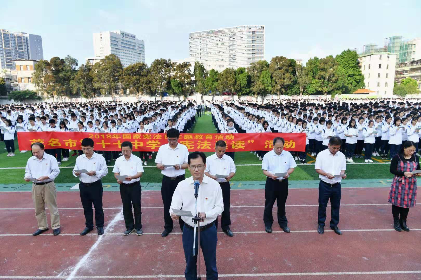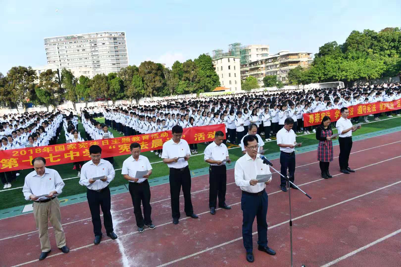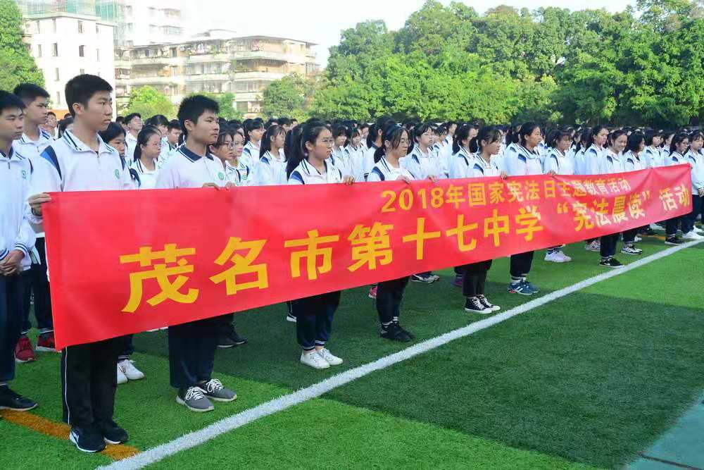 为深入贯彻党的十九大精神和全国教育大会精神,认真落实党中央关于深入学习宣传和贯彻实施宪法的决策部署,茂名市第十七中学开展2018年国家宪法日“宪法晨读”活动。