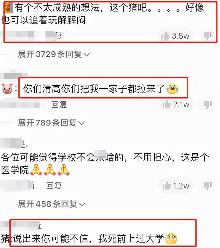 还有在校学生调侃道,论如何将医学院变成农学院?各专业学生们分工如下,临床医学负责第一个步骤,护理学院负责改刀,口腔学院负责剔牙,康复专业负责按摩,等等,看来学生们面对一车活猪很兴奋。大家放心,学校已有专业安排,这只是学生调侃。希望学生们能安心隔离,不要有什么心理压力。