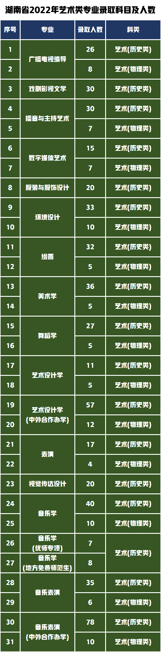 采取非平行志愿投档,艺术类专业2022年录取的专业及录取人数见下表: