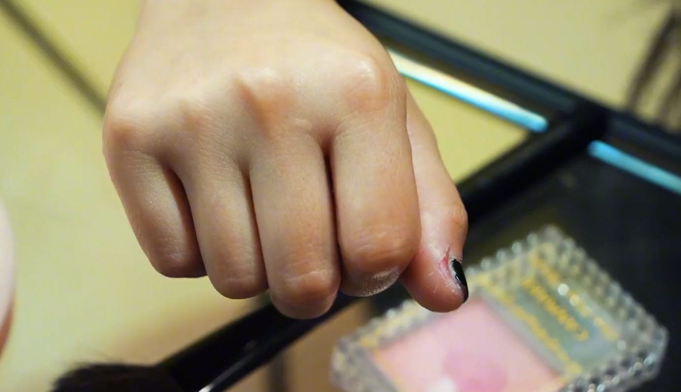 即使每天工作在灰尘飞扬的地方,也止不住妮尔爱美的心,她特别喜欢做指甲,可是现在她的手已经没有了曾经的细滑,手指头因为工作的原因开始开裂。
